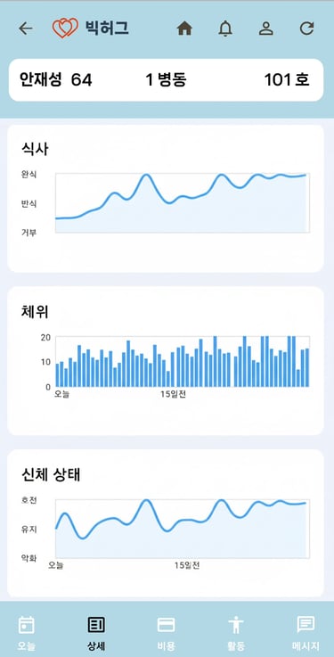 보호자는 요양기관을 자주 방문하지 못해도 시니어의 상태를 일별로 확인할 수 있습니다.