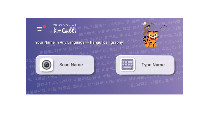 비한어권 대상 서비스로, 외국어 이름을 한글 캘리그래피 이미지로 바꾸는 AI 디지털 캘리그래피 앱입니다.